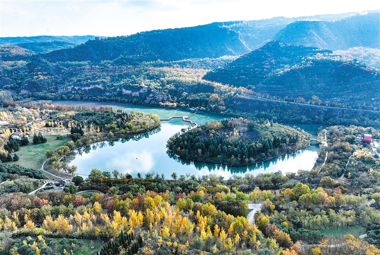河南:图为11月14日在河南黄河小浪底风景区拍摄的景色(无人机照片)。新华社发(苗秋闹 摄)
