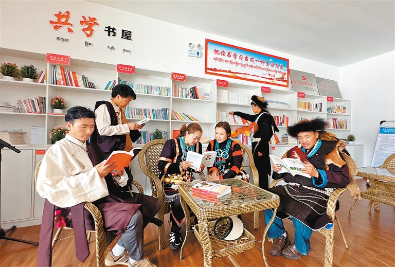 昌都察雅县阿孜乡阿都村党员干部集体学习党的二十届三中全会精神。 本报记者 丹增群培 摄