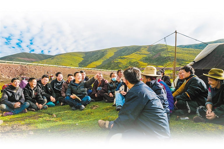 昌都察雅县阿孜乡阿都村党员干部深入牧民帐篷宣讲党的二十届三中全会精神。本报记者 白玛泽旺 摄