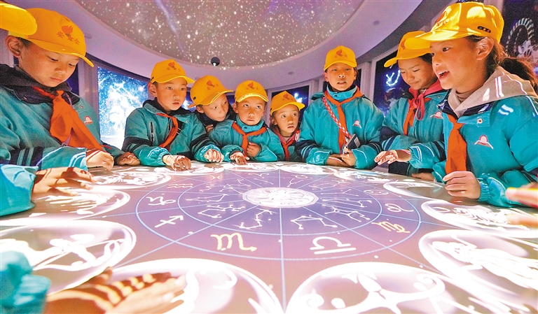 图为学生参观藏域星球天文馆。本报记者 格桑伦珠 摄