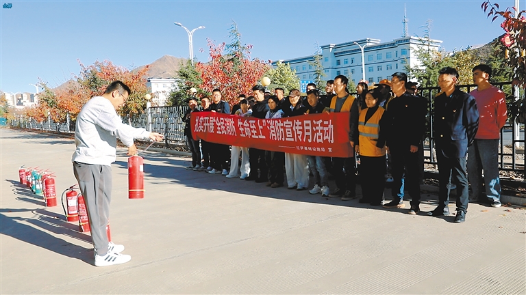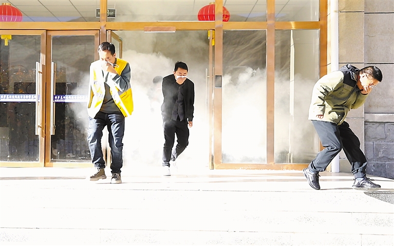 图为干部职工进行应急消防演练。本报记者 旦增兰泽 本报通讯员 拉巴次仁 摄