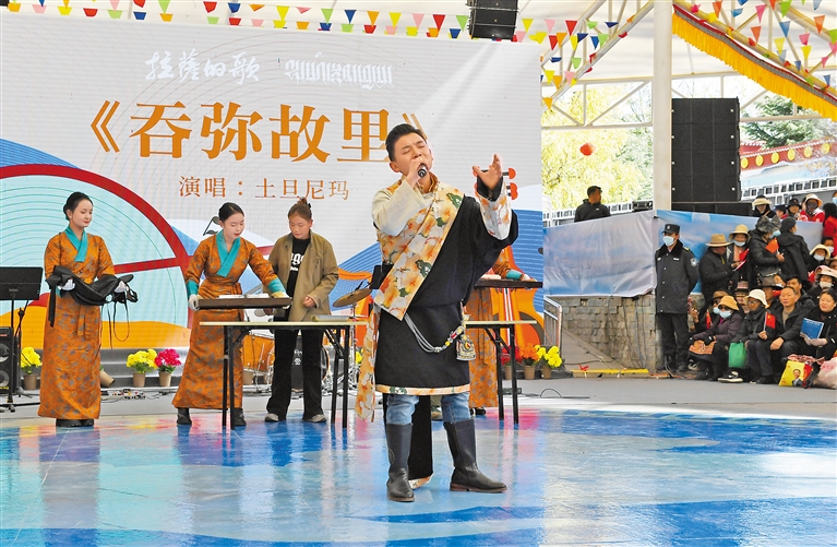 图为歌手演唱歌曲《吞弥故里》。本报记者 索朗旺久 摄