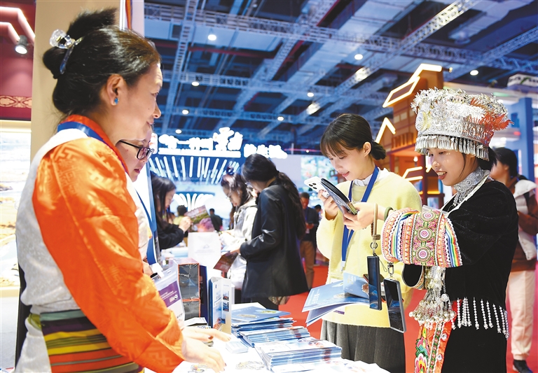 西藏展台以“中国西藏 扎西德勒”为主题,设置文旅资源展览区、特色产品展示区、非遗体验区以及业务对接洽谈区四大展区,面向国际国内旅行商、媒体及广大群众全面展示西藏文化旅游资源,推介优质精品旅游线路、藏医药康养和非遗民俗文化等。展区内精彩纷呈的传统舞蹈、服饰表演以及非遗文化展示吸引众多市民观赏。
