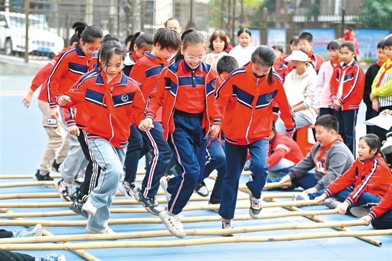 12月6日,广西梧州市新兴二路小学举行民族体育运动会,比赛设有抛绣球、大象拔河、陀螺、板鞋接力、竹竿舞、跳绳等十多个项目。学生们在运动会中尽享民族传统体育运动带来的快乐。