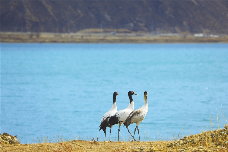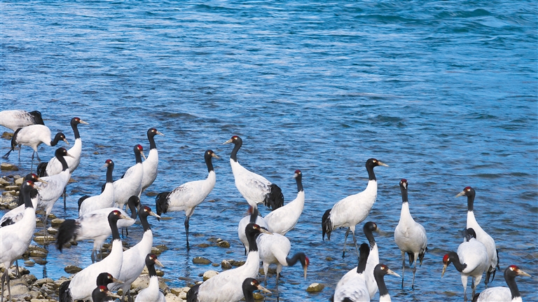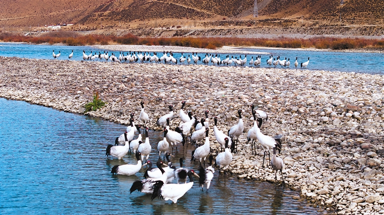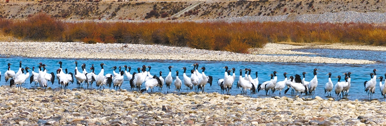 记者了解到,近年来随着西藏高度重视黑颈鹤等野生动物的保护工作,在不懈的努力下,一系列行之有效的保护举措得以大力推行。其中,专门设立的黑颈鹤国家级自然保护区成为了黑颈鹤最为可靠的庇护所,区内严格的管控措施和悉心的生态维护,为黑颈鹤的繁衍栖息提供了安全且稳定的空间。同时,生态修复工程也在稳步开展,无论是湿地的修复、水源的涵养,还是植被的恢复与重建,都犹如为黑颈鹤生存的生态画卷添上了浓墨重彩的一笔。通过这些努力,黑颈鹤的生存环境得到了根本性的有效改善。据统计,西藏境内黑颈鹤的数量从三千只大幅增加至一万多只,种群数量更是呈现出持续稳定增长的良好态势。