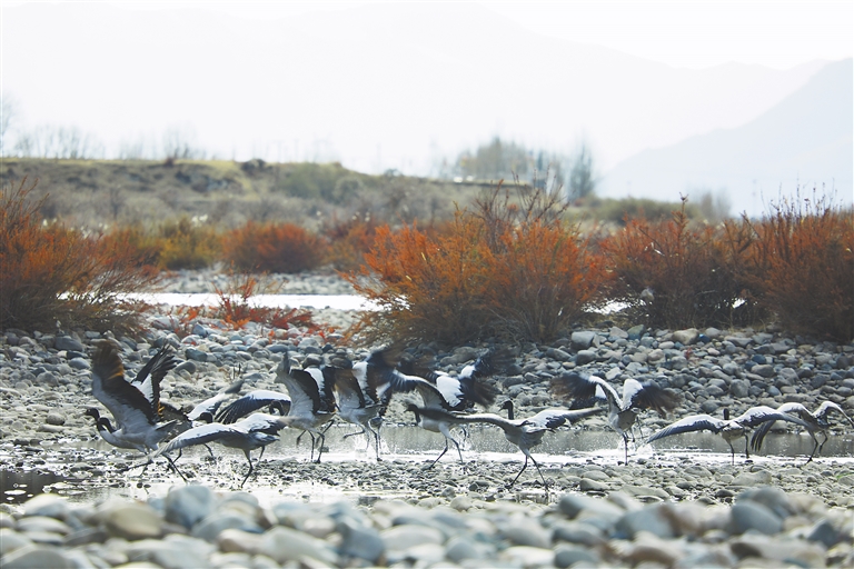 本版图片均为黑颈鹤在墨竹工卡境内栖息的场景。