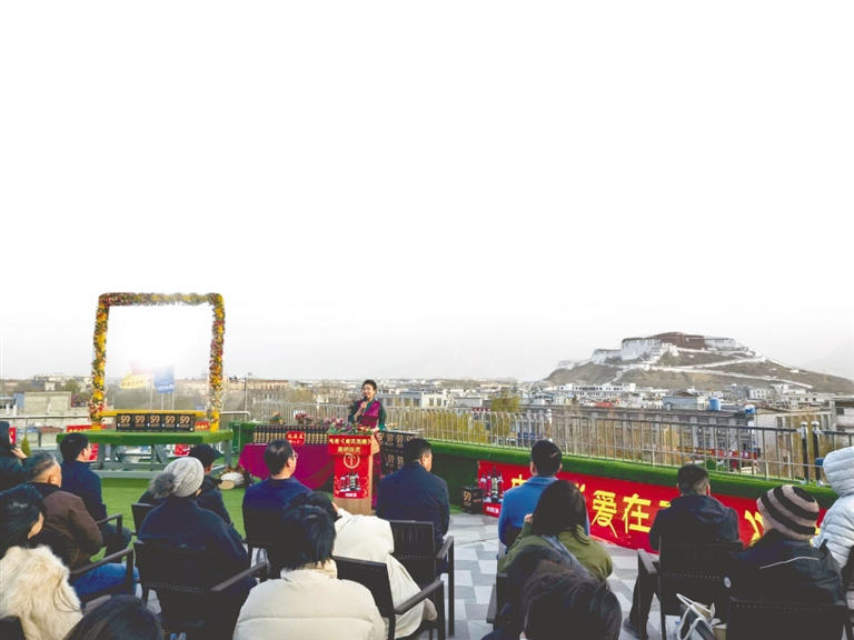 近日,由西藏广播电视台、西藏广播影视制作中心及西藏风古道悠悠文化传媒有限公司共同投资、出品和联合拍摄的电影《爱在西藏》启动仪式在拉萨举行。作为自治区文艺扶持重点项目,该片是西藏自治区国有传媒机构与民营公司联合投资影视剧创作、生产的首次尝试,将为西藏影视产业开拓市场、创作出更多更好的影视精品力作进行积极、有意义的探索。该片剧本将加紧打磨润色修改,计划于2025年夏季拍摄,为西藏自治区成立60周年献礼。 图为电影《爱在西藏》启动仪式。 本报记者 拉巴桑姆 摄