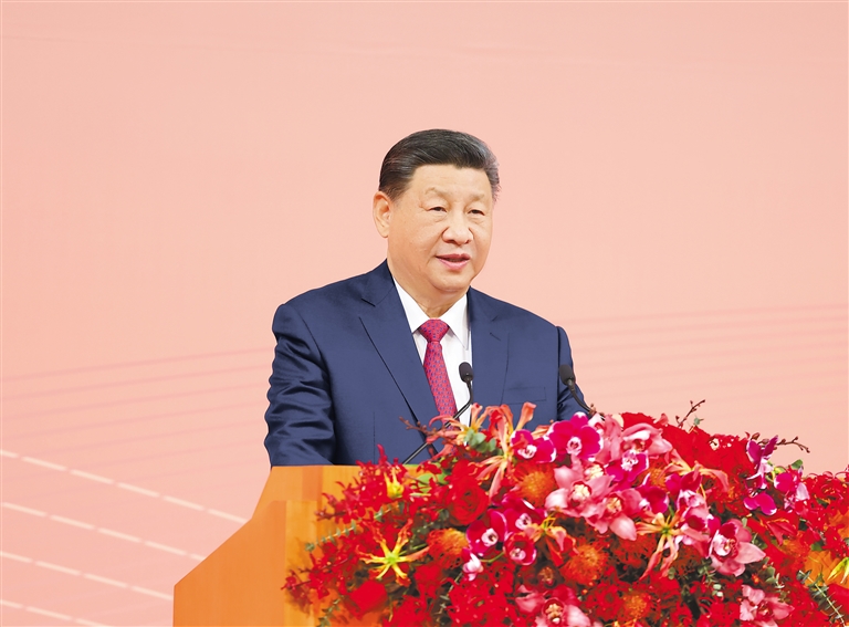 习近平表示,澳门拥有“一国两制”这一独特优势,已经打下坚实发展基础,乘着强国建设、民族复兴的浩荡东风,完全有条件有能力飞得更高、走得更远、实现更好发展。