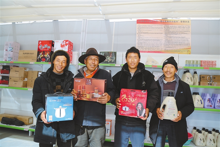 “你帮我看看有多少积分,我想兑换一瓶洗衣液……”记者看到村民三五成群地汇聚在斯布村积分兑换超市,有的记积分、有的兑换生活用品,现场热闹非凡。“村里搞了积分制是真好!”正在兑换生活用品的索朗次仁满脸笑意地说,“我攒了70多积分,过两天孩子放假,要洗孩子的 衣服,所以今天用5个积分兑换了一瓶洗衣液,剩下积分先留着,以后啊,我还得继续加油,和邻居们处好关系,多参与村里的环境卫生整治活动。”