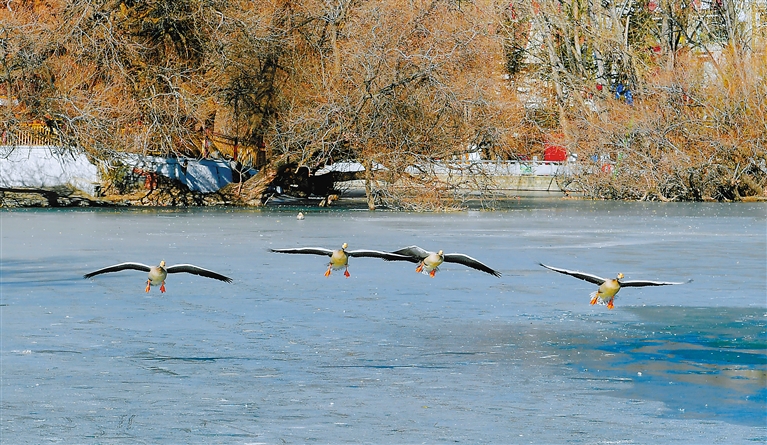 入冬以来,大批候鸟飞抵拉萨栖息越冬。拉萨河、宗角禄康公园等地成为它们的天堂,众多候鸟为冬日的拉萨增添了一道亮丽的风景。