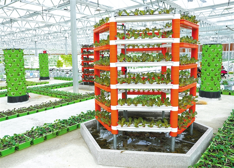 走进浙江舟山岱山现代农业产业园区内的温室大棚,无土栽培的蔬果层层叠叠,铺展开来,散发出诱人光泽。