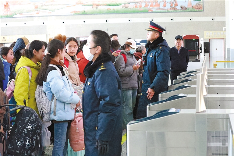 近日,为更好地服务学生寒假返乡,山南火车站积极与当地各学校联系接洽,及时掌握返乡学生的具体人数及客票、乘车需求等信息,并增设了学生票办理专窗,安排专人引导。同时,山南火车站还组织人员在安检口、检票口、电扶梯、站台等关键区域加强引导帮扶,特别开辟了学生安检专用通道,帮助学生快速验证进站,减少等待时间。