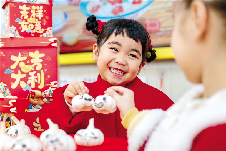图为1月6日,浙江省湖州市长兴县龙山幼儿园的孩子们绘制“蒜头娃娃”。新华社发(谭云俸 摄)