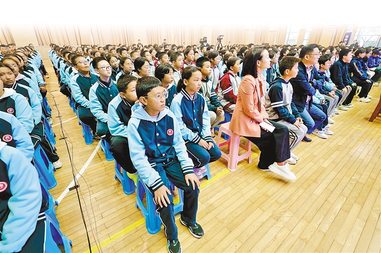 图③:活动中,常州西藏民族中学500余名师生代表认真聆听演讲。
