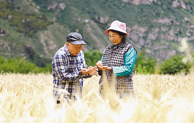 图为贾永明琼果夫妇在田间劳作。本报记者 曲珍 本报通讯员 索朗 摄