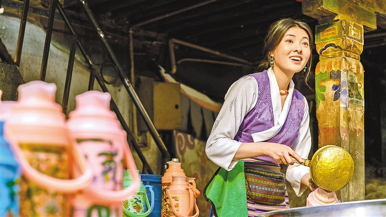 故事中的酥油味儿还表现在人物的“日常”生活形态上,细到地地道道的服饰、挼糌粑的手势、话语的表达等方面。