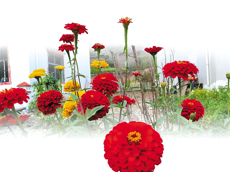 ?林芝市察瓦龙乡松塔村群众种在房前屋后的花卉。