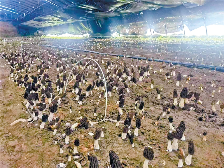 图为大棚内的羊肚菌。本报记者 贡秋曲措 本报通讯员 梁侠 牛继平 摄