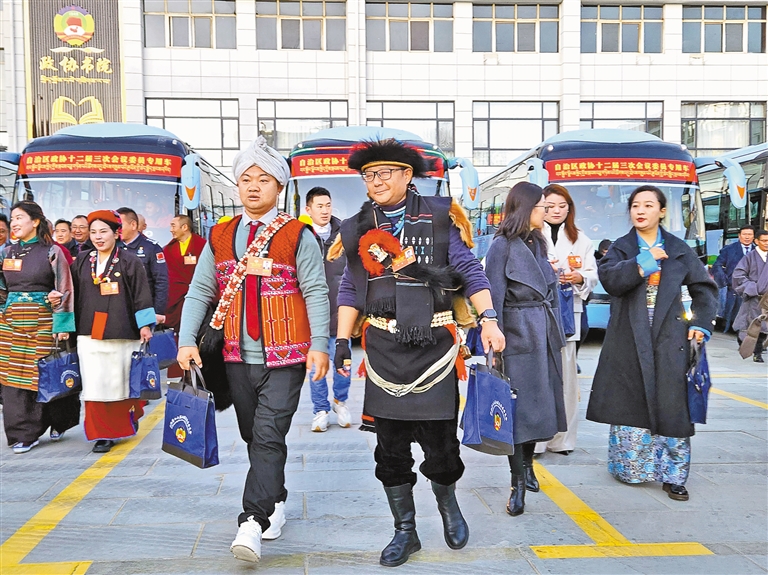 委员们精神饱满步入会场。 本报记者 曲珍 摄