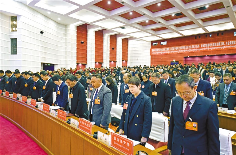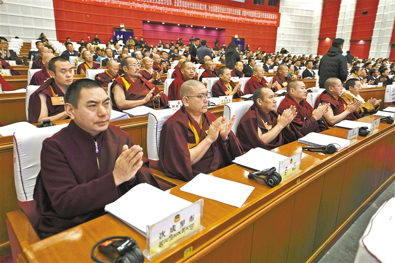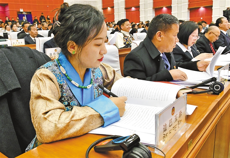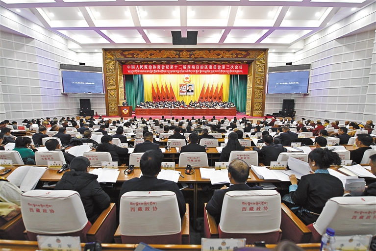 委员们认真聆听政协常委会工作报告。 本报记者 曲珍 丹增群培 摄