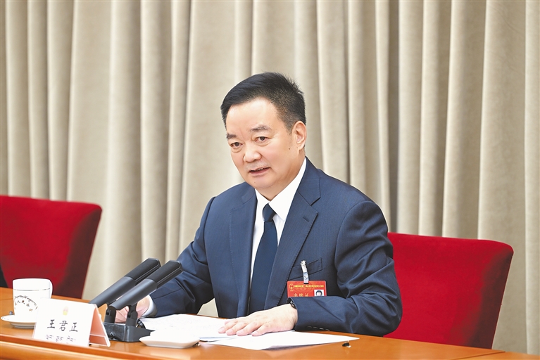 王君正表示,洛桑江村同志代表自治区人大常委会作的工作报告,全篇贯穿习近平总书记关于坚持和完善人民代表大会制度的重要思想,体现了党中央决策部署和自治区党委工作安排,总结成绩实事求是,谋划目标稳中有进,部署工作针对性强,自治区“两院”工作报告通篇贯穿习近平法治思想,符合西藏实际,完全赞成。