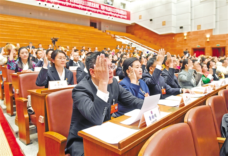 闭幕会现场,气氛庄重热烈。一次次表决,一阵阵掌声,凝聚着人大代表们的集体智慧,传递着全区人民的共同愿望。