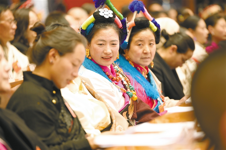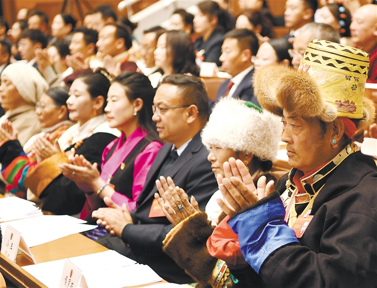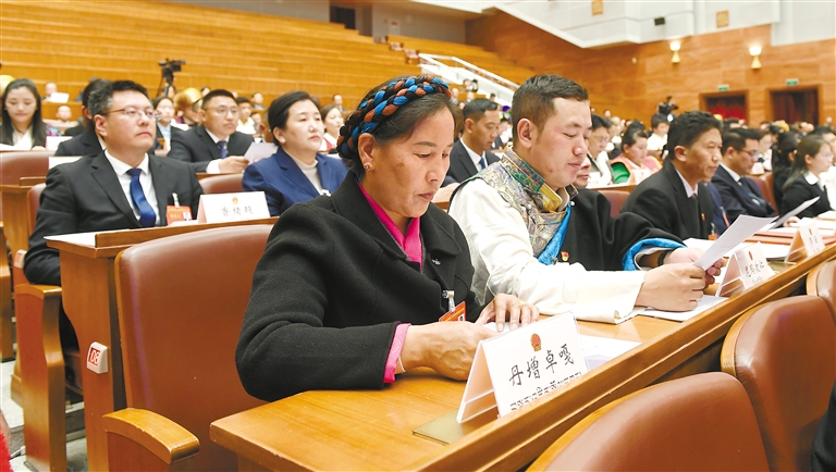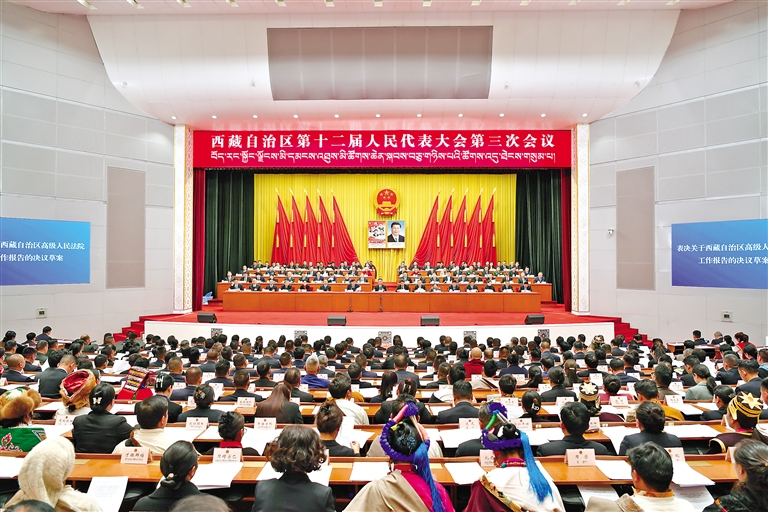 图①:自治区十二届人大三次会议闭幕会现场。本报记者 次仁平措 摄