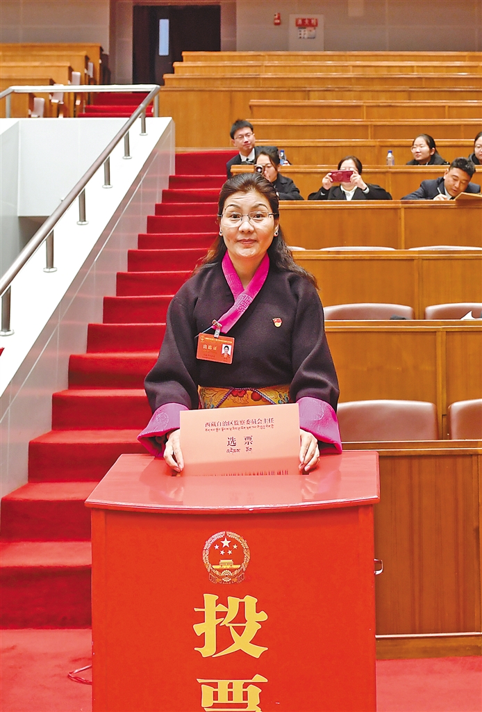 图⑥:代表正在投票。本报记者 旦增兰泽 摄