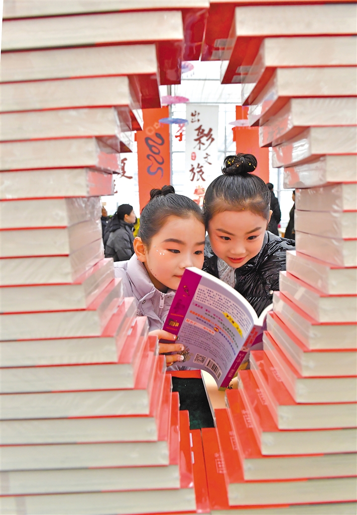 1月23日,小朋友在河南省商丘市夏邑县太平镇龙港湾“辞旧迎新悦读大会悦读阅爱惠民书展”上阅读书籍。新华社发(苗育才 摄)