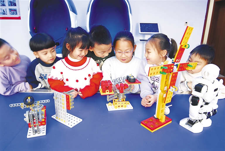1月23日,孩子们在山东省青岛市即墨区环秀街道墨香郡社区参加“寒假快乐课堂”。新华社发(张涛 摄)