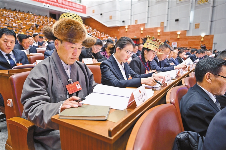 19日上午,自治区十二届人大三次会议在拉萨开幕。 图为代表们认真聆听政府工作报告。 本报记者 旦增西旦 摄