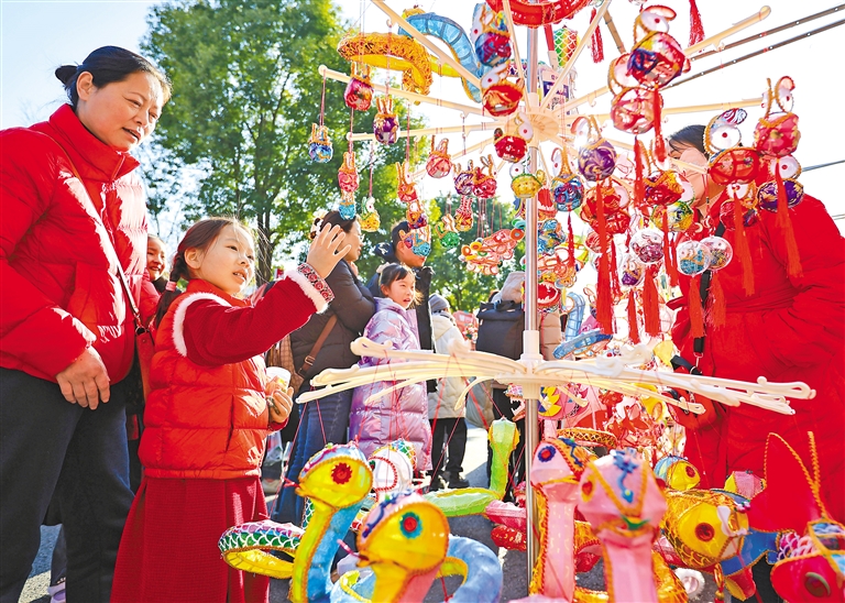 图③:人们在南京夫子庙花灯市场挑选花灯。新华社发(苏阳 摄)