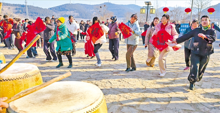 图⑥:山东省济南市长清区孝里街道方峪村村民在扭秧歌。新华社记者 范长国 摄