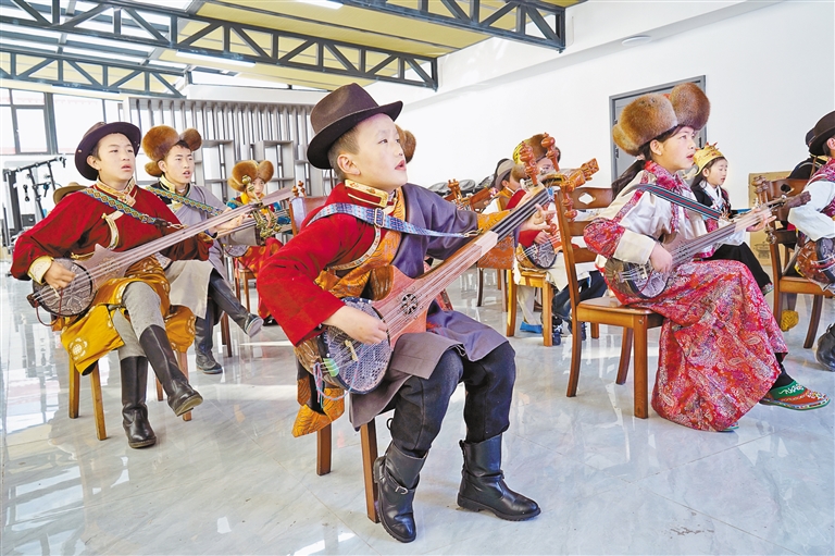 教学现场,来自小学、初中、高中等不同年龄段的40余名学生被安排分班授课。授课教师们从扎念琴的构造、制作流程、文化渊源等方面入手,普及非遗文化。同时,结合教学实际,从扎念琴的不同流派代表作、弹奏握琴技巧、乐理知识等对学生进行专项训练。