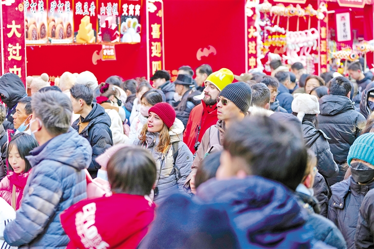 在前门大街选购茶叶,在杨梅竹斜街买兔儿爷,在各大购物中心选购国产潮牌衣服……不少北京的门店反映,春节假期,外国消费者较去年春节明显增加。