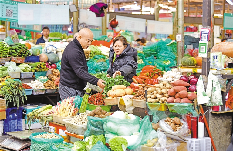 “菜篮子”工程一直是我区注重改善民生的一项重要工作。近年来,全区各市地通过推进蔬菜生产基地建设,解决蔬菜种植、运输等制约问题,积极推动“菜篮子”工程取得良好成效。如今,广大群众不仅吃到了“西藏菜”,菜农也通过“菜篮子”工程鼓起了“钱袋子”。 图为拉萨市民群众在某菜市场采购食材。本报记者 唐斌 摄