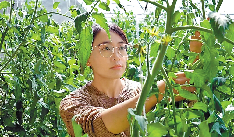 如今,大棚里的各种蔬果青翠欲滴、硕果满园。