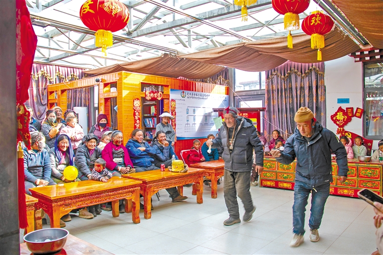 值此元宵佳节,2月12日下午,在定日县协格尔镇翁嘎村村委会里,一场别开生面的元宵节活动正在热闹上演。
