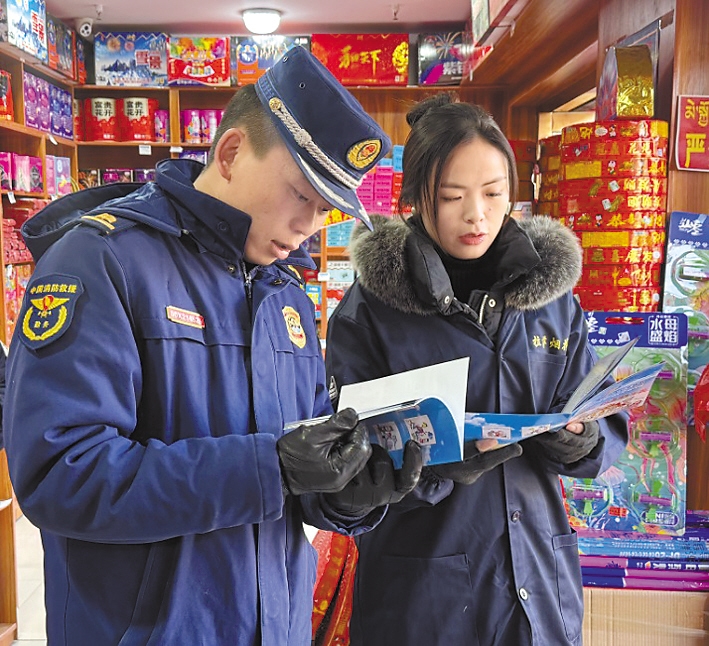 拉萨市消防救援支队宣传员走进烟花爆竹经销点,为店员科普易燃易爆场所消防安全知识。 本报通讯员 肖暄 摄