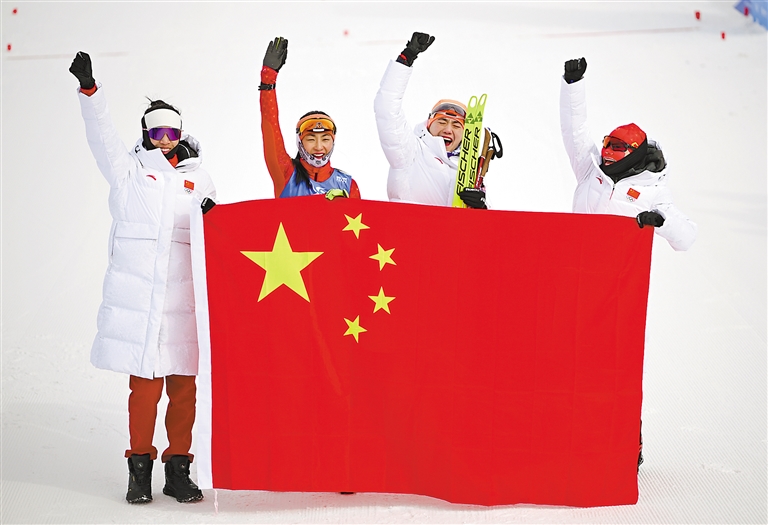 冬季两项赛场上,唐佳琳、文颖、褚源蒙、孟繁棋组成的中国队摘得中国代表团当日唯一一金。在开局不利的情况下,中国队在最后时刻反超韩国队,以21秒的领先优势夺得冠军,最后一棒的孟繁棋赛后说:“最后一棒确实压力很大,但是心里憋着一股不服输的劲儿,不管结果如何,也想着要拼到最后。”