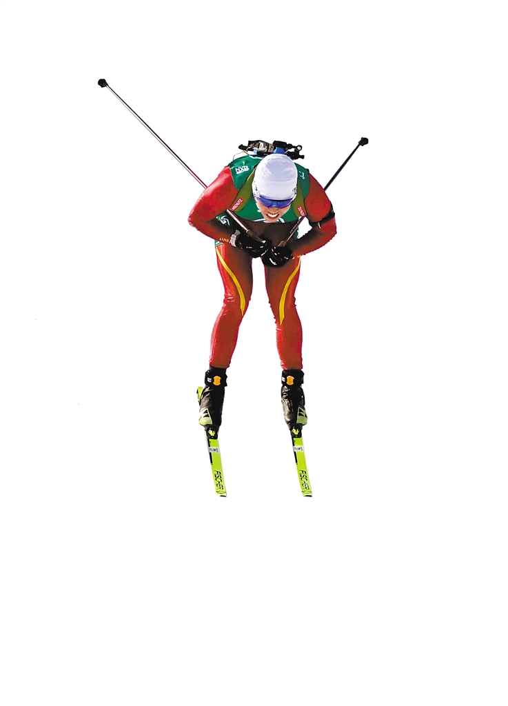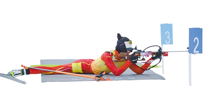 2月13日,第九届亚冬会冬季两项女子4X6公里接力比赛在亚布力举行。 ▼中国队选手褚源蒙在比赛中。 新华社记者 胡虎虎 摄