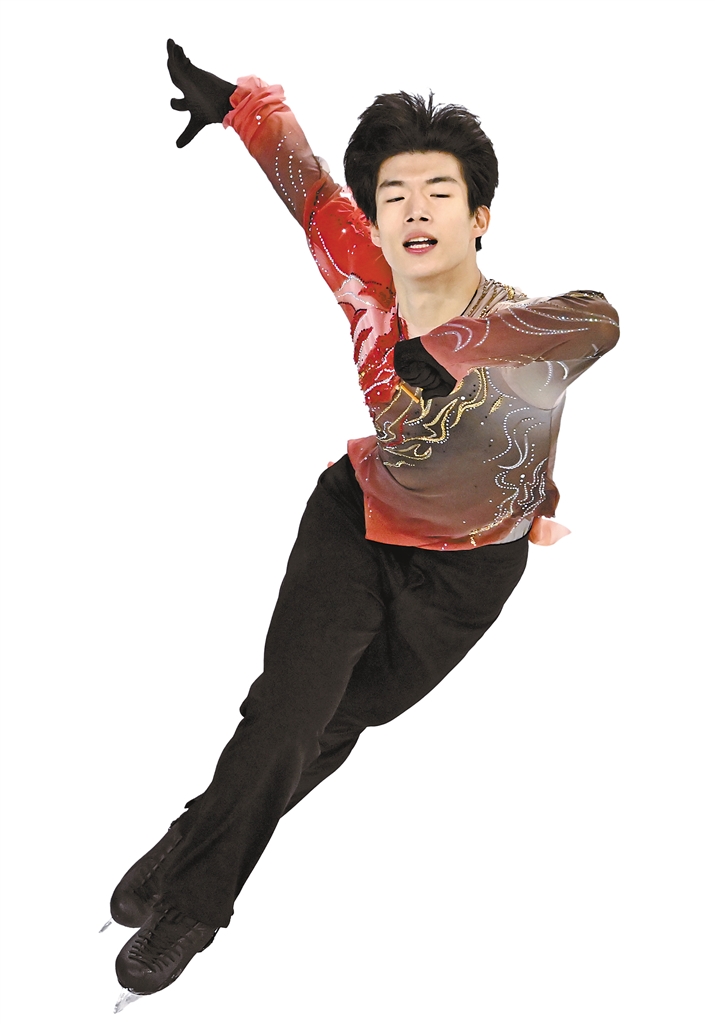 2月13日,第九届亚冬会花样滑冰项目男子个人滑自由滑比赛在哈尔滨举行。 ▼中国选手陈昱东在比赛中。 新华社记者 李一博 摄
