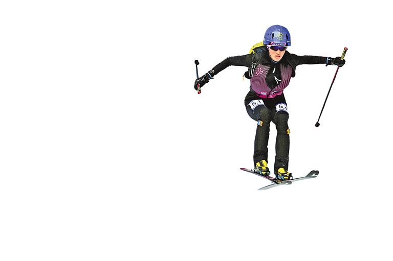 2月12日,第九届亚冬会滑雪登山混合接力决赛在亚布力举行。中国组合次旦玉珍/布鲁尔、于婧萱/毕禹新、索朗曲珍/刘建宾分别获得冠、亚、季军。 右图:2月12日,次旦玉珍在比赛中。 新华社记者 谢剑飞 摄