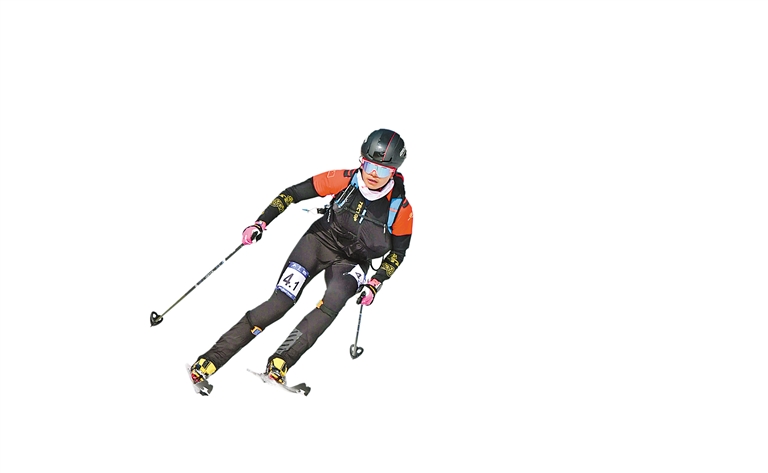 2月12日,第九届亚冬会滑雪登山混合接力预赛在亚布力举行。 右图:2月12日,中国选手索朗曲珍在比赛中。 新华社记者 谢剑飞 摄