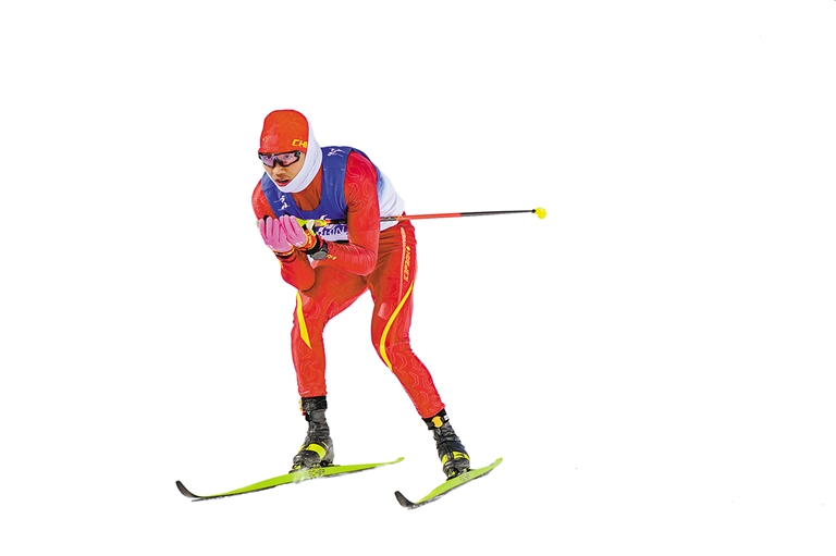 2月8日,第九届亚冬会越野滑雪男子个人短距离(传统技术)资格赛在亚布力举行。 左图:2月8日,中国选手次仁占堆在比赛中。 新华社记者 连振 摄