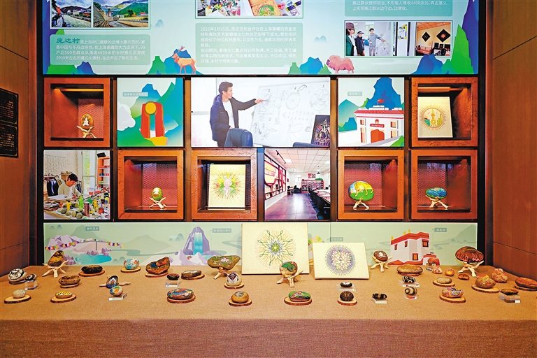 据悉,展览还同步展出了庞达村的村民们在索喃次仁带领下创作的石绘作品,作品所用的石头均来自亚东,有力传递了边境村民们的“强边”心声。