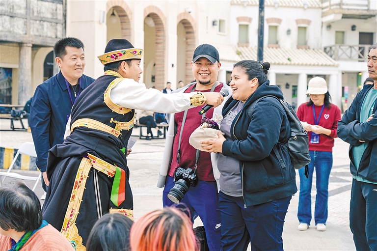 近日,林芝市非遗传承人、青年企业家和青少年学生代表组团赴澳门特别行政区开展“石榴籽一家亲”林芝非遗展演交流活动。在澳门青年展艺协会和澳门大学,与澳门文创青年代表进行交流,学习非遗创新发展经验;在澳门渔人码头表演非遗舞蹈《米纳羌姆》、工布扎念博咚弹唱《达姆韵》等节目,展现林芝的文化魅力。
