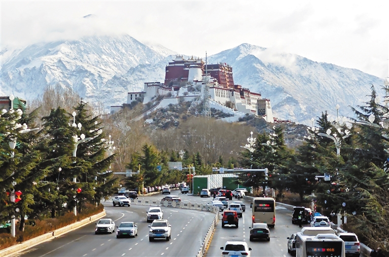 2月16日,拉萨市迎来2025年首场降雪,城区银装素裹,雪景分外美丽。