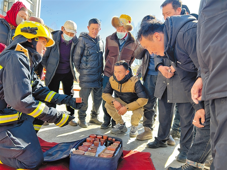 图为曲松县邱多江乡村民、护林员、村干部在县消防救援大队参观体验消防设备。 本报通讯员 吴燕晨 摄