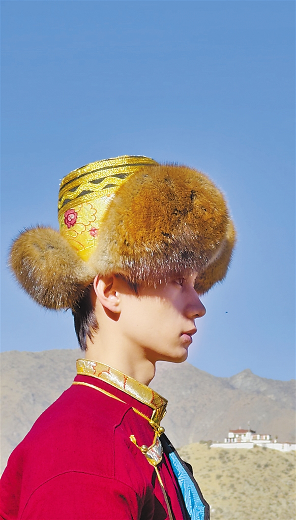 “朗霞”藏语意为氆氇帽,是墨竹工卡县女性服饰的重要组成部分。这种帽子以黑色氆氇做底,两侧镶有花边,后面翘有两个角,实用又美观,成为女性展示自身魅力的重要配饰。帽子的装饰因年龄和身份的不同而有所差异,年轻女孩戴的帽子装饰较多,花纹图案丰富,顶上为八瓣花,代表着吉祥八宝(传统图案)的数量;成年女性的帽子则少些花俏,更为沉稳;老年妇人的帽子则简洁大方,透露出岁月的积淀与智慧;而僧尼的帽子则为绛红色,彰显着她们的宗教身份与信仰。